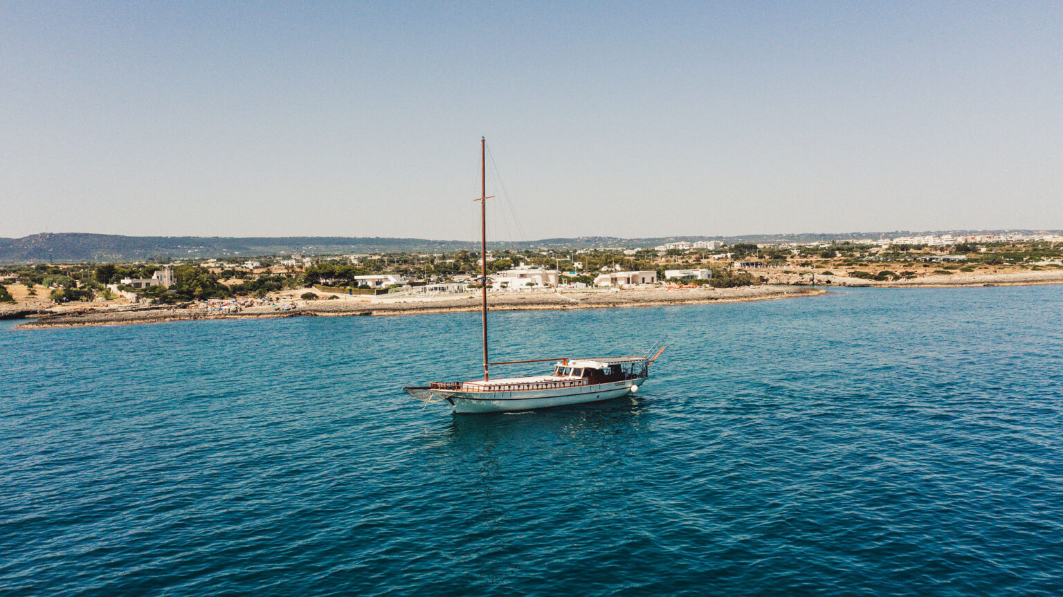 The route runs along the coast between Monopoli and Polignano a Mare, renowned for spectacular sea caves and crystal-clear waters. Thanks to the gulet’s shallow draft, it can approach natural coves and cliffside caverns, offering a privileged perspective on some of the most iconic areas of the Adriatic shoreline. As you sail, the steady motion of the hull, the sound of the sea against the wood, and the sight of cliffs reflected in the water create a unique atmosphere, where nautical tradition and natural landscape blend into an authentic, engaging experience.